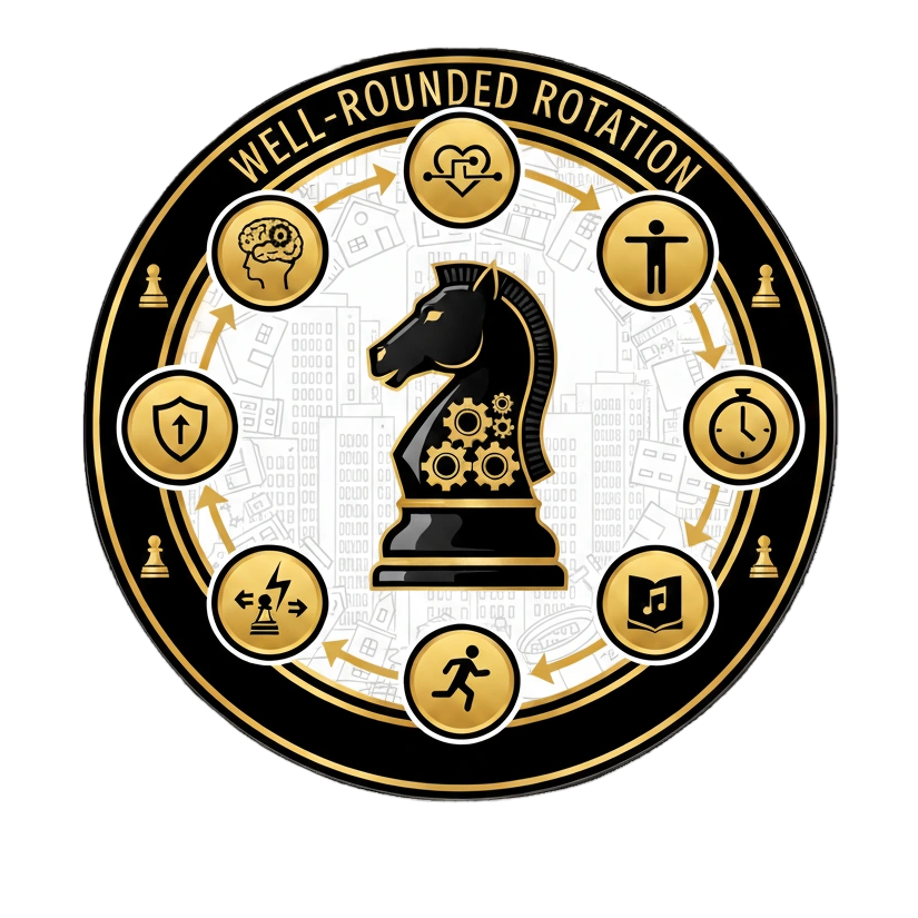 The knight moves with intention — not just forward, but strategically in many directions. It represents the youth’s ability to think ahead, adapt to change, and grow through experience — the essence of being well-rounded.
